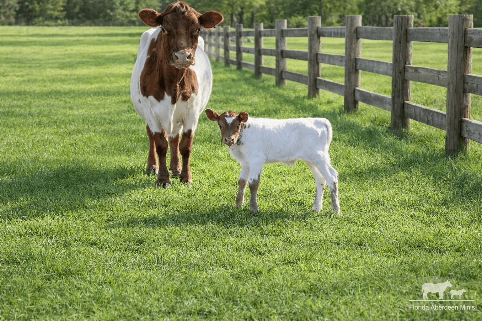 This adorable Miniature Aberdeen bull calf features a striking heart-shaped blaze and beautiful red and white coloring. Raised at Florida Aberdeen Minis, he shows the calm temperament and compact build the breed is known for. A perfect addition for a breeding program, small farm, or pasture companion.